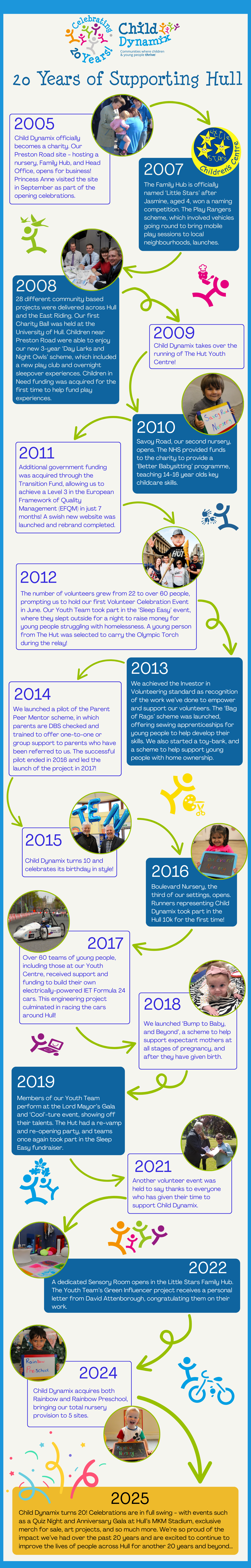 Child Dynamix has been up to a lot over the past 20 years! With so much to celebrate, we simply can’t cover all of it, but have a look below at just *some* of the major milestones of the past two decades!