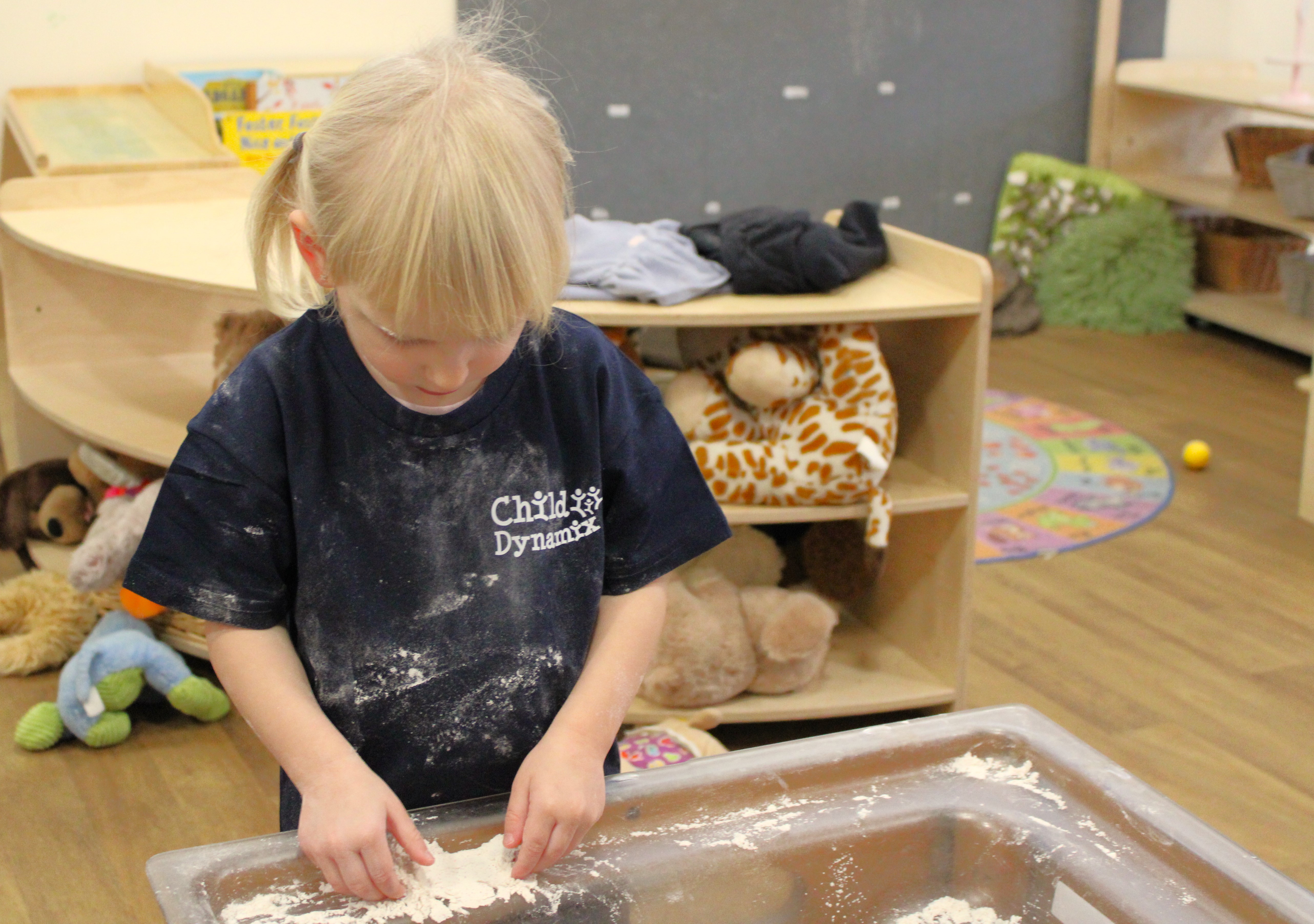 In order to explore the world around them, we encourage children to get involved in messy and sensory play, meaning the clothing they wear can often get mucky. That is why we offer the option to purchase Child Dynamix branded t-shirts and hoodies for your child. These t-shirts and hoodies can then be used during any messy activities, so you don’t have to worry about other clothes being ruined. This is completely optional, and the price we charge is the minimum possible to cover our own costs – keeping them as affordable as possible for you.
